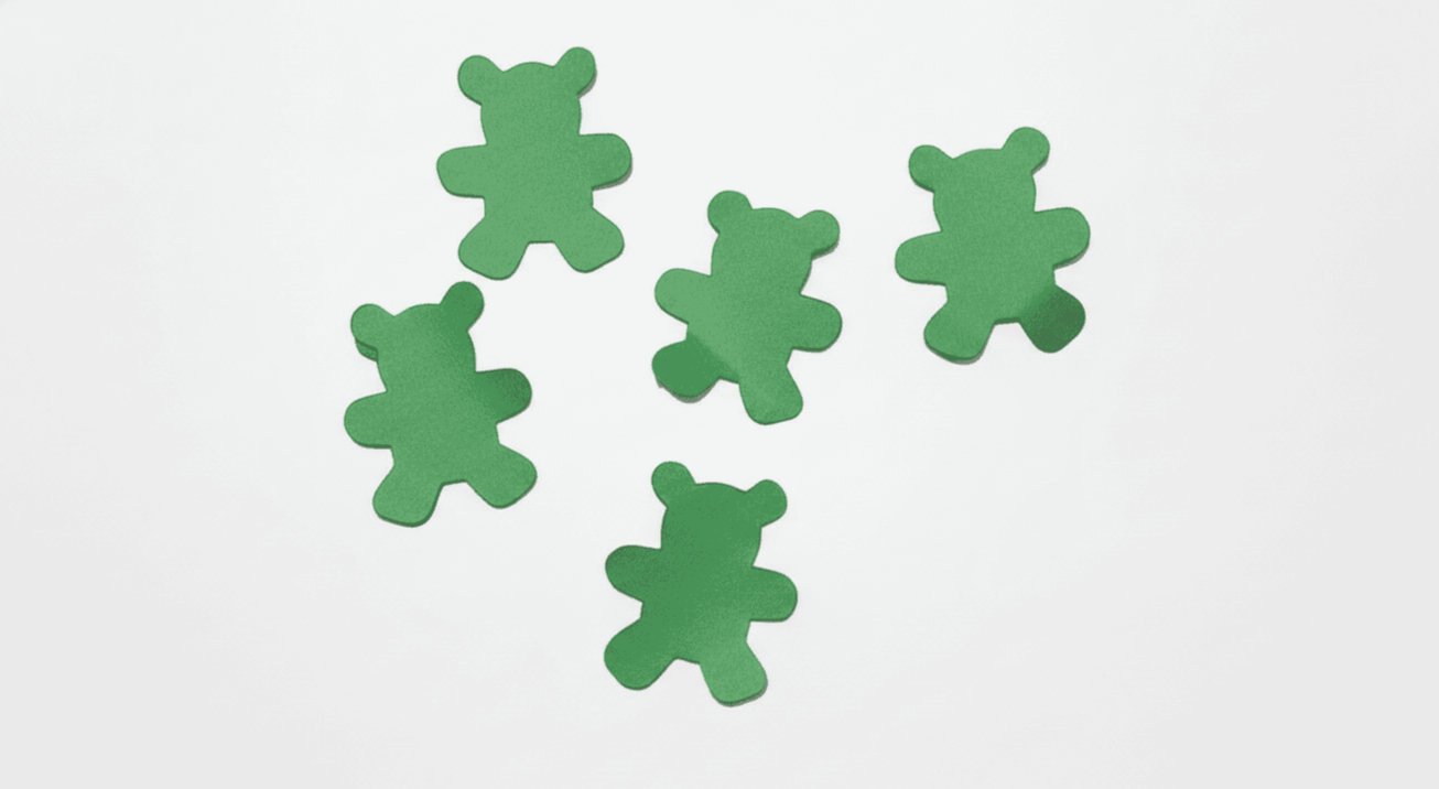 Confeti de osos verdes de Confetix: diferenciacion visual que mejora tu margen