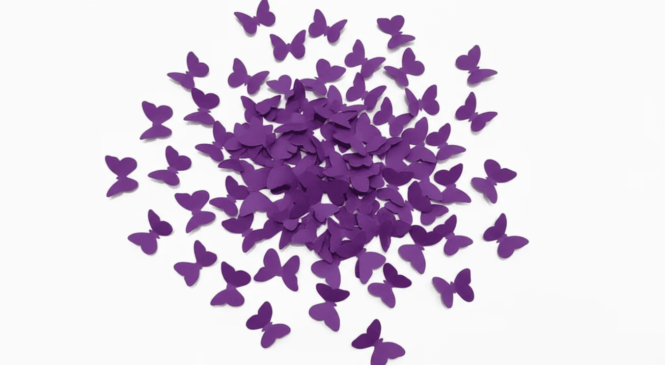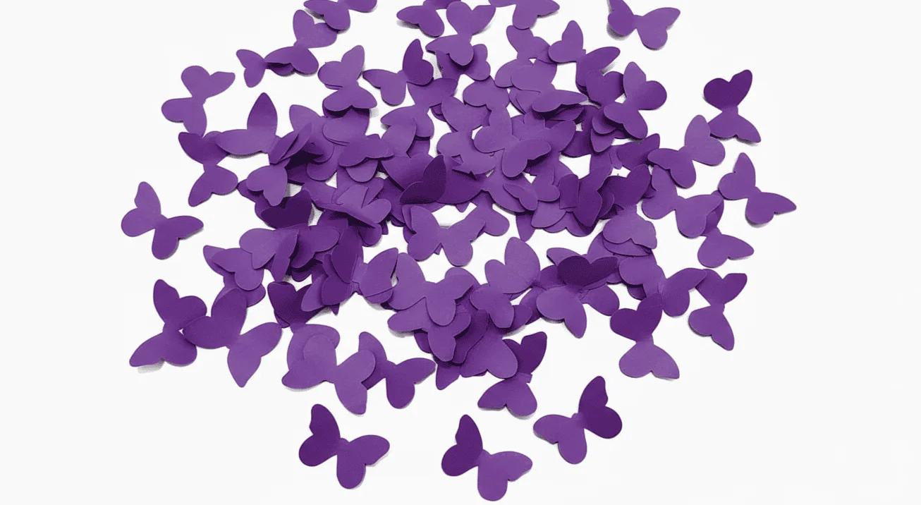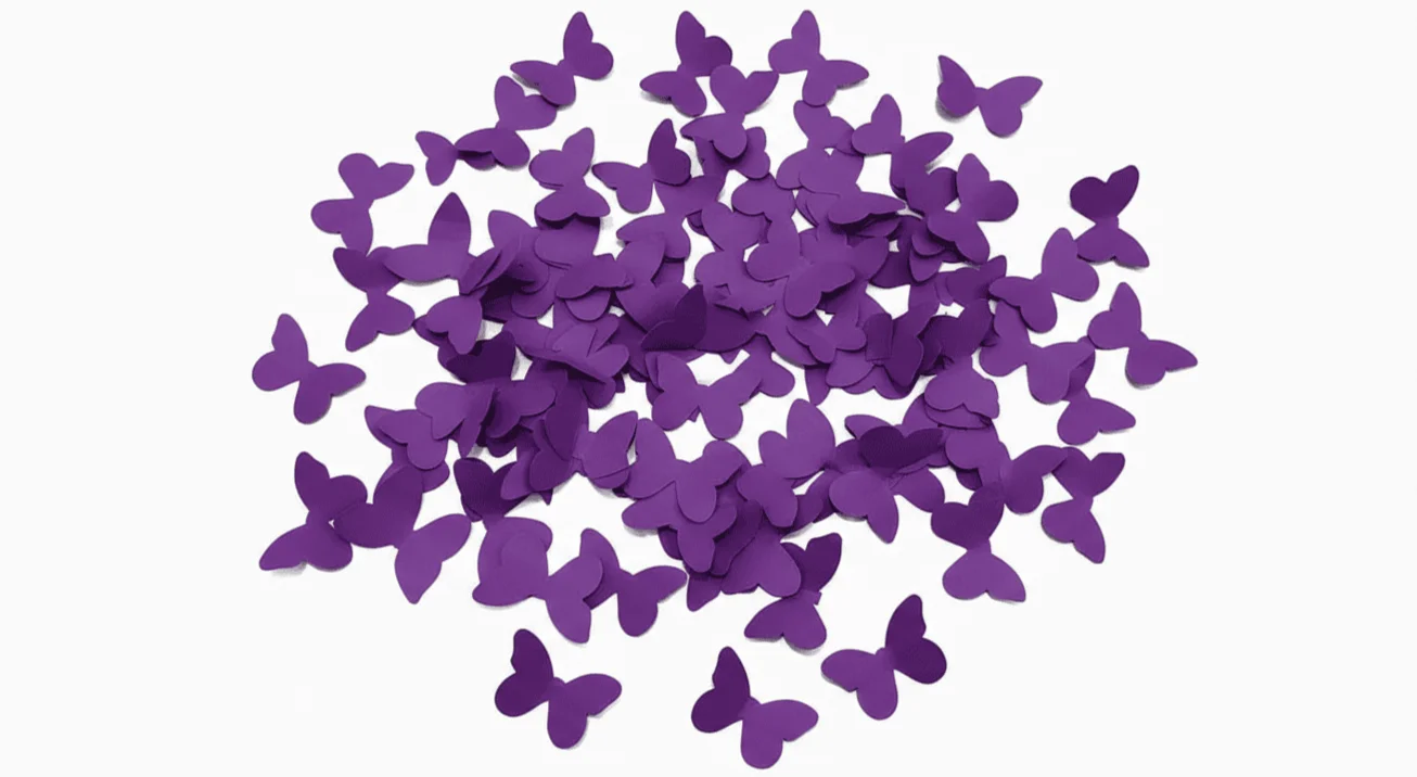 | Confeti de papel mariposa morada de Confetix | Impacto visual distintivo que fortalece el branding | Producción uniforme y control de calidad constante |